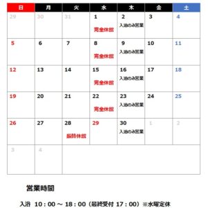 2026年4月営業カレンダー公開